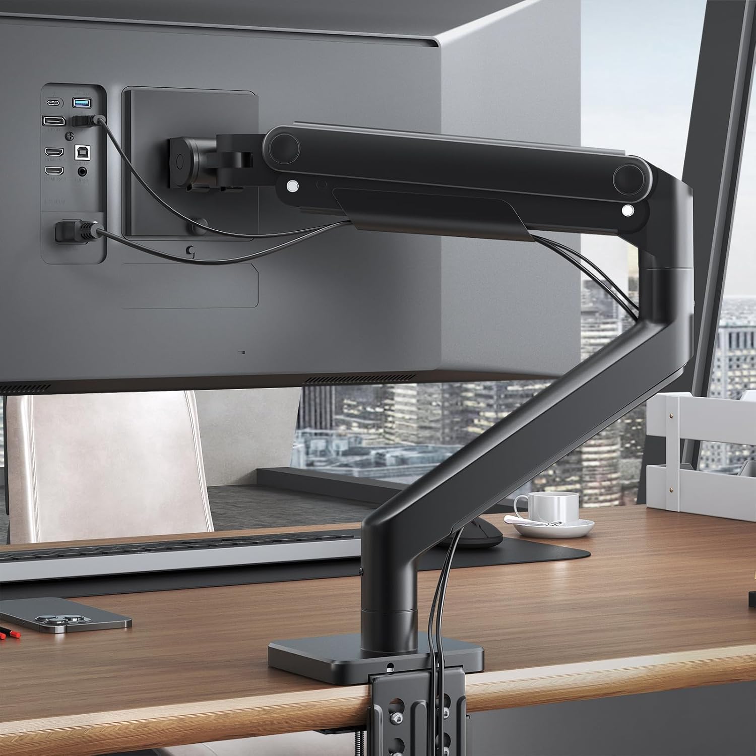 新しいディスプレイの設置は、ディスプレイ(モニター)アーム(下記の画像を参考)を取り付けることを検討しています。