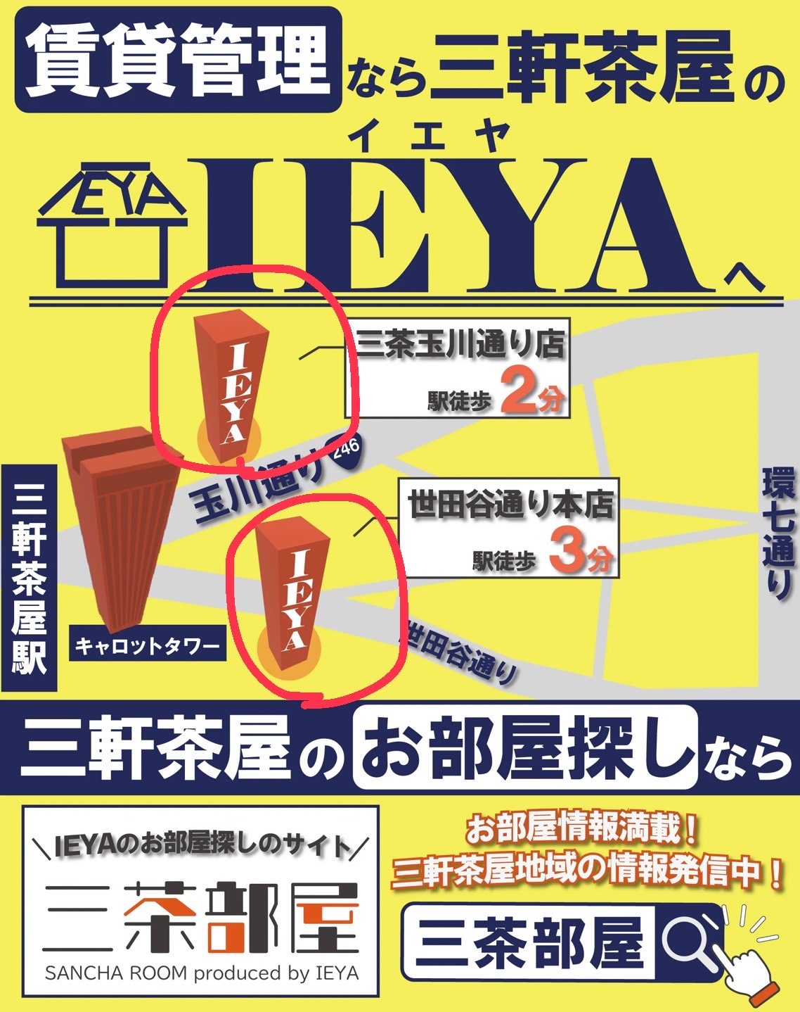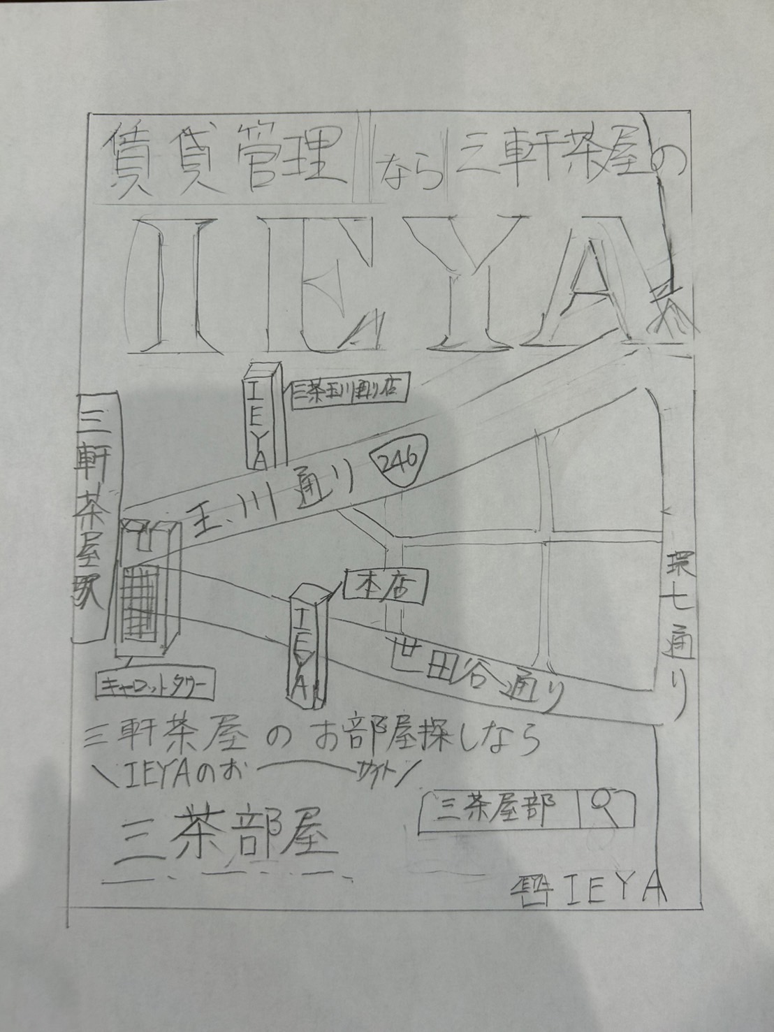 環七沿いのビルの広告なので、そこからみた人がわかるようなMAPにしたくて、