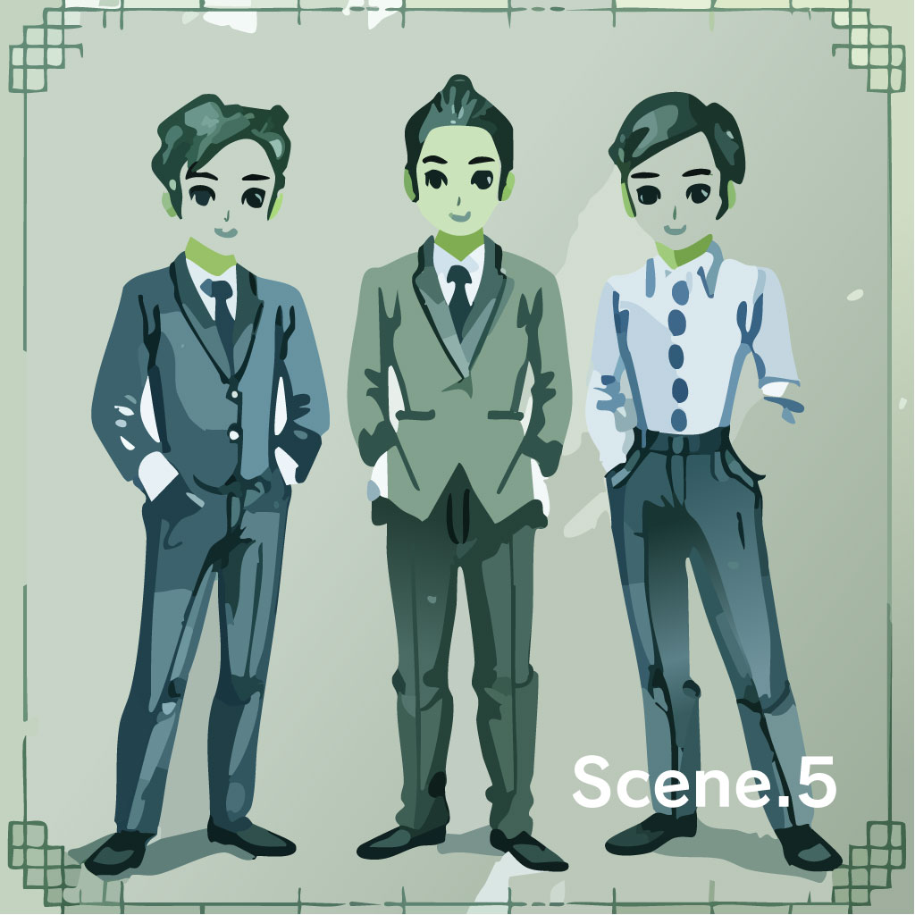 カメラに向かって横一列に並ぶ、営業A・B・Cの3人のイケメン。